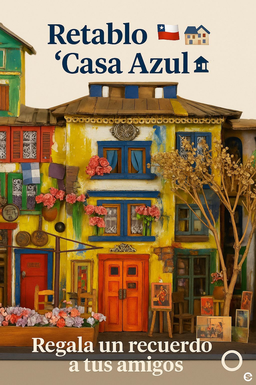 Colorido retablo inspirado en la arquitectura popular urbana, con balcones ...