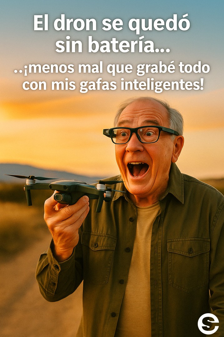 “El dron se quedó sin batería... ¡menos mal que grabé todo con mis gafas inteligentes!”