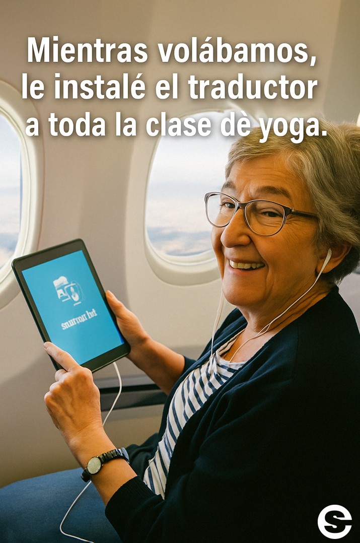📱 “Mientras volábamos, le instalé el traductor a toda la clase de yoga.”