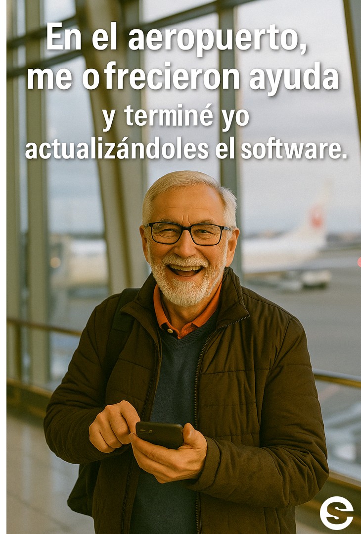 “En el aeropuerto, me ofrecieron ayuda... y terminé yo actualizándoles el software.”