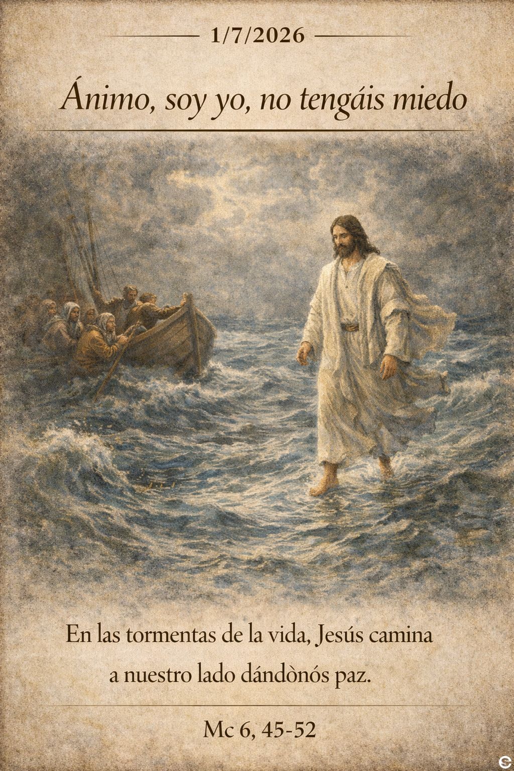Jesús caminando sobre las olas del mar agitado ...
