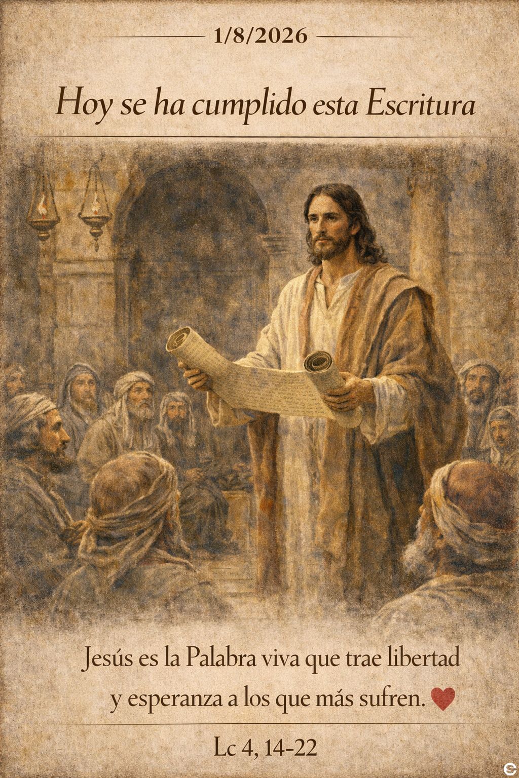 Jesús sosteniendo un pergamino en la sinagoga ...