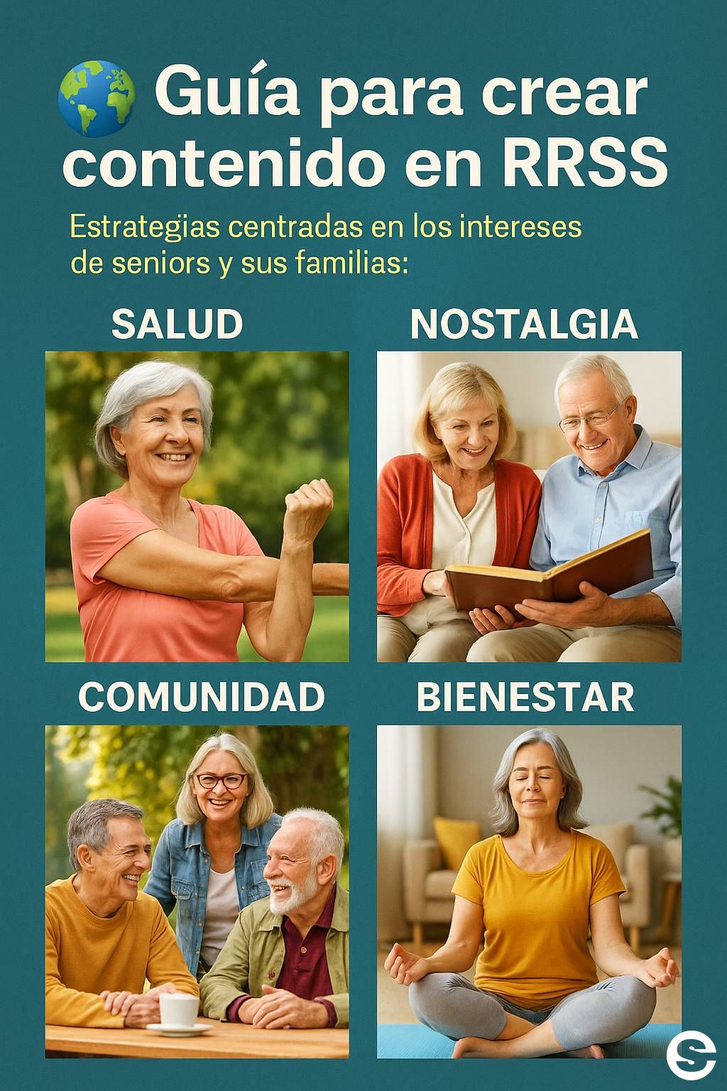 Estrategias centradas en los intereses de seniors y sus familias: salud, nostalgia, comunidad y bienestar.