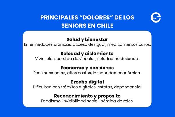 En Círculo Senior hemos escuchado y analizado las preocupaciones de nuestra comunidad. Hemos detectado que, más allá de los casos particulares, los seniors en Chile cargan con tres grandes tensiones estructurales que definen su día a día:
